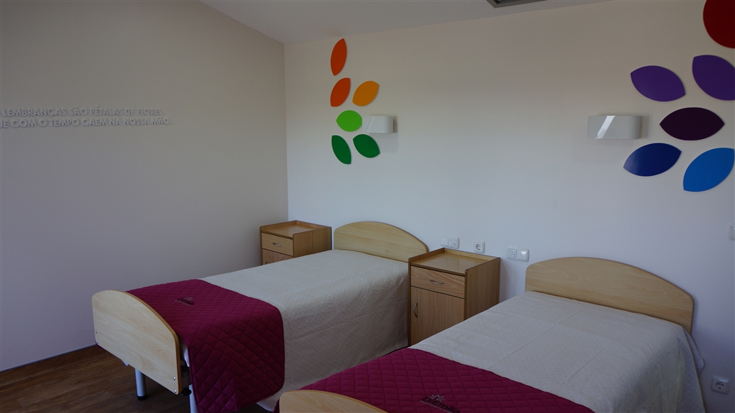 As nossas instalações possuem quarenta camas, todas elétricas, distribuídas em quartos duplos e individuais, equipados com o sistema AVAC (Aquecimento, Ventilação e Ar Condicionado), televisão, internet, sistema de chamada de emergência (nurse call) e casa de banho totalmente equipada para utentes com mobilidade reduzida.